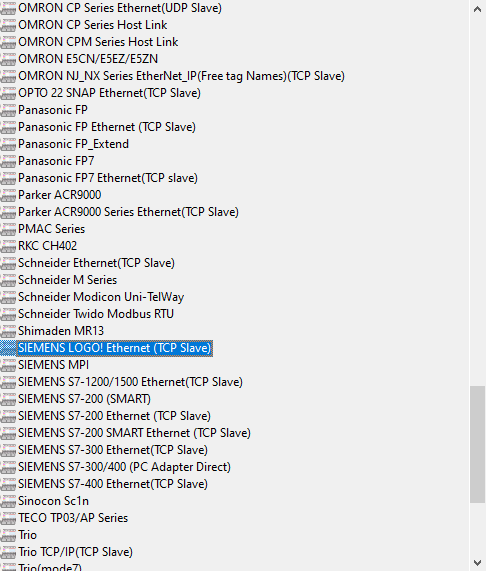 Die HMI bringen eine ganze Reihe von Kommunikationstreibern für SPS mit, mit denen sich auf die Speicherbereiche der Steuerungen über serielle Schnittstellen (RS-232/RS-485) oder Ethernet (LAN) zugreifen lässt. Mit dabei sind auf jeden Fall die weit verbreiteten offenen Protokolle Modbus RTU und Modbus TCP, die HMI lassen sich dabei sowohl als Slave nutzen (die Kommunikation geht dann von der Steuerung aus) oder als Master (das HMI kommuniziert dann mit der SPS). Eigene Treiber für eine Vielzahl Hersteller sind auch mit dabei, unter anderem für Beckhoff ADS, Siemens LOGO!, Siemens S7-1200/1500, aber auch S7-200 oder S7-300 falls ihr alte HMI ersetzen wollt.